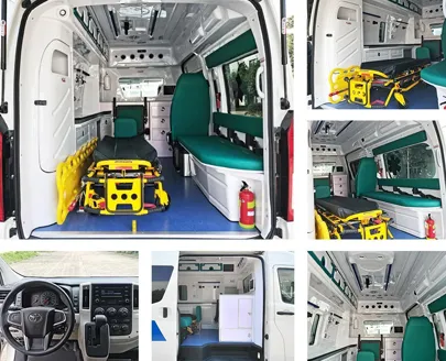 APK/Ambulance/Toyota Hiace/AT/Gasoline. Ambulance provides advanced medical transport services for patients requiring continuous intensive care and advanced life support, the vehicle can be customized with different exterior designs, interior layouts, and medical configurations according to customer requirements.
