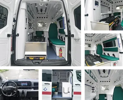 APK/Ambulance/Frod V362/AT-MT/Gasoline. Ambulance provides basic first aid and patient transport services, the vehicle can be customized with different exterior designs, interior configurations, and medical equipment according to customer requirements.
