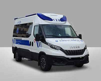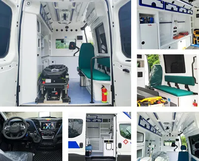 APK/Ambulance/Iveco/HR/Diesel/AT. Ambulance provides comprehensive pre-hospital emergency care for critically ill or severely injured patients, the vehicle can be customized with various exterior designs, interior layouts, and medical configurations based on customer requirements.