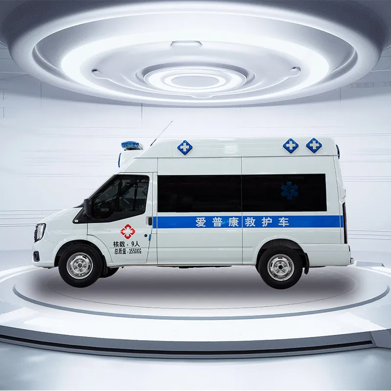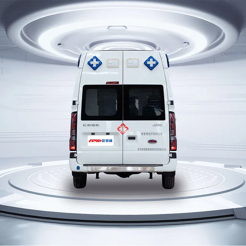 APK/Ambulance/JMC Fushun/MWB/LR/AT-MT/Diesel. Ambulance provides comprehensive pre-hospital emergency care for critically ill or severely injured patients, the vehicle can be customized with various exterior designs, interior layouts, and medical configurations based on customer requirements.