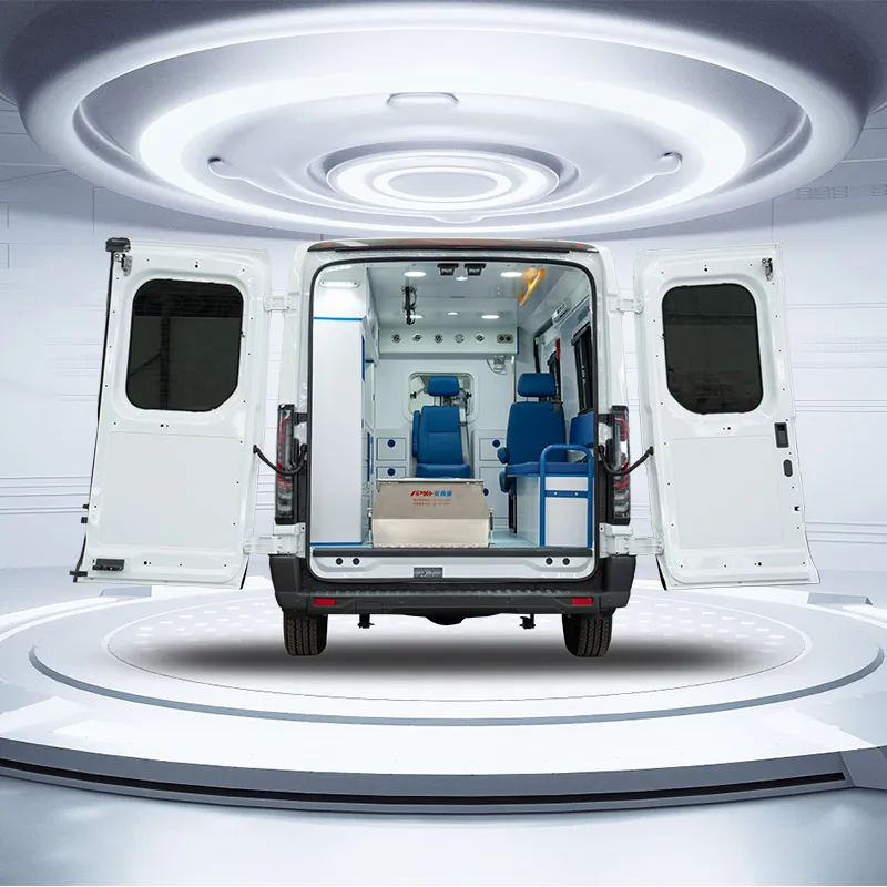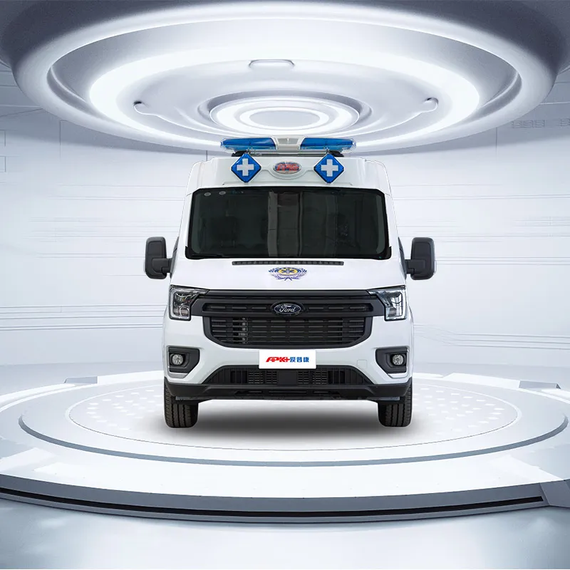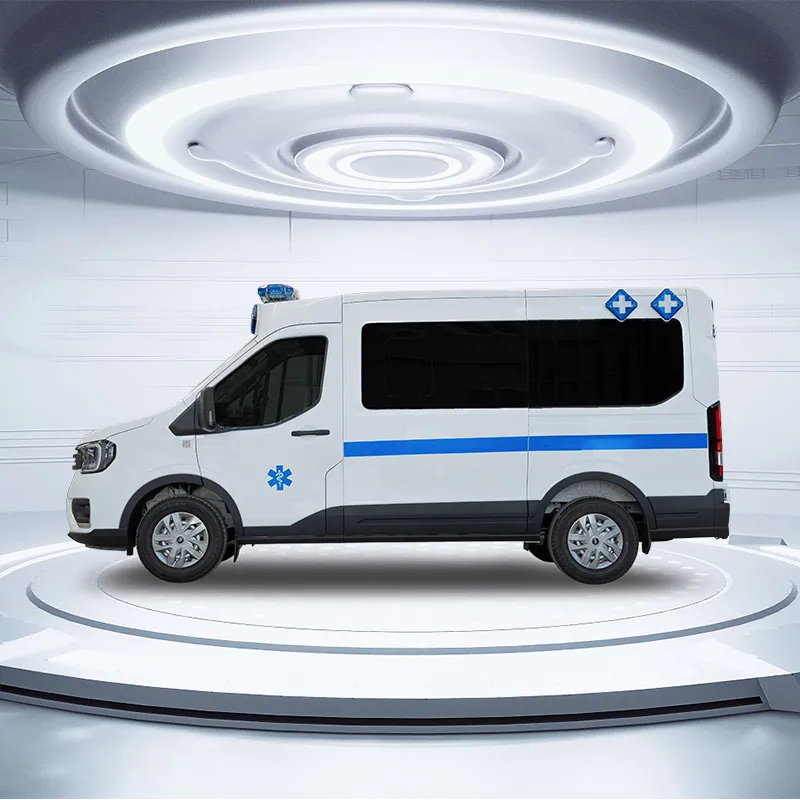 APK/Ambulance/Frod V363/MWB/MR/AT-MT/Diesel. Ambulance provides comprehensive pre-hospital emergency care for critically ill or severely injured patients, the vehicle can be customized with various exterior designs, interior layouts, and medical configurations based on customer requirements.