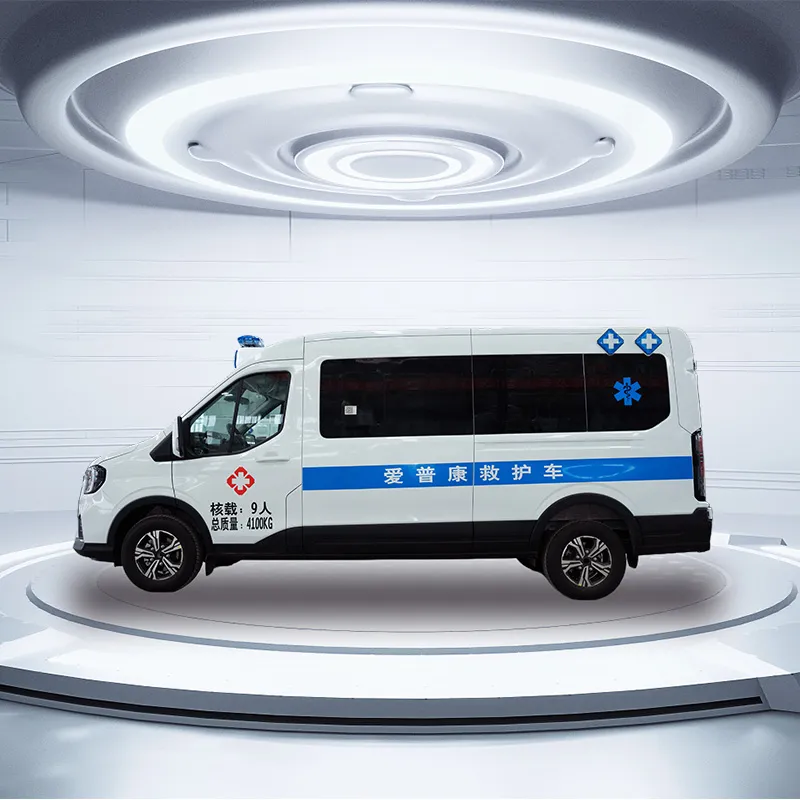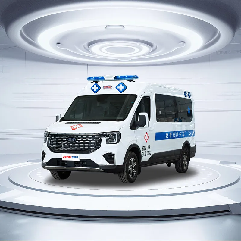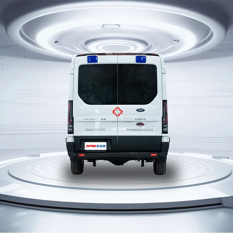 APK/Ambulance/Frod V363/LWB/MR/AT-MT/Diesel. Ambulance provides comprehensive pre-hospital emergency care for critically ill or severely injured patients, the vehicle can be customized with various exterior designs, interior layouts, and medical configurations based on customer requirements.