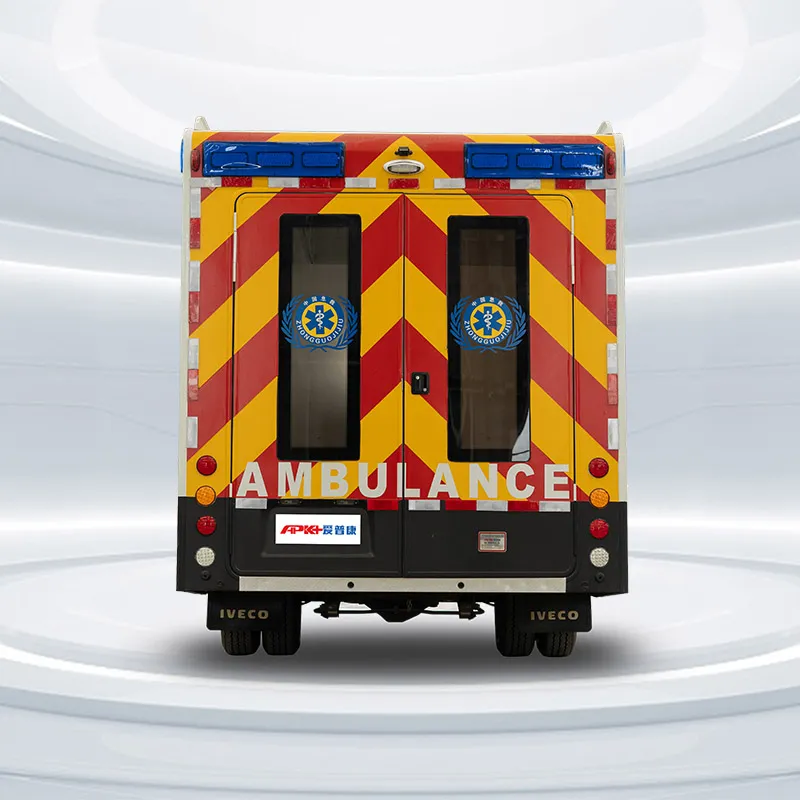APK/Ambulance/Iveco/Diesel. Ambulance provides comprehensive pre-hospital emergency care for critically ill or severely injured patients, the vehicle can be customized with various exterior designs, interior layouts, and medical configurations based on customer requirements.