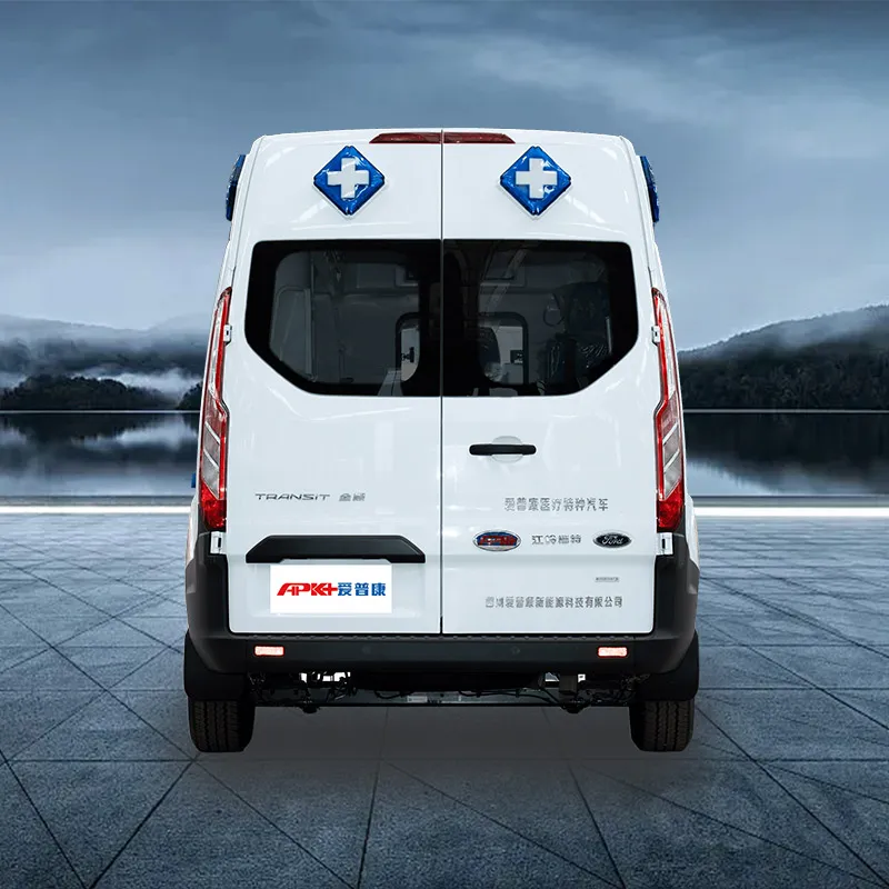 APK/Ambulance/Frod V362/MWB/MR/AT/Gas. Ambulance provides advanced medical transport services for patients requiring continuous intensive care and advanced life support, the vehicle can be customized with different exterior designs, interior layouts, and medical configurations according to customer requirements.