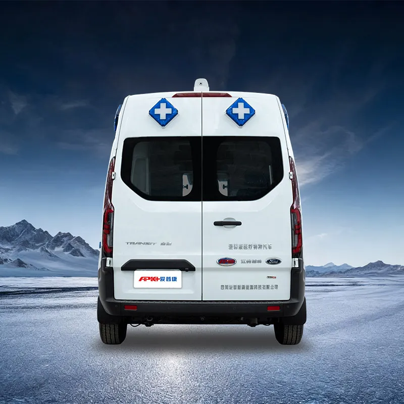 APK/Ambulance/Frod V362/MWB/MR/AT-MT/Diesel. Ambulance provides advanced medical transport services for patients requiring continuous intensive care and advanced life support, the vehicle can be customized with different exterior designs, interior layouts, and medical configurations according to customer requirements.