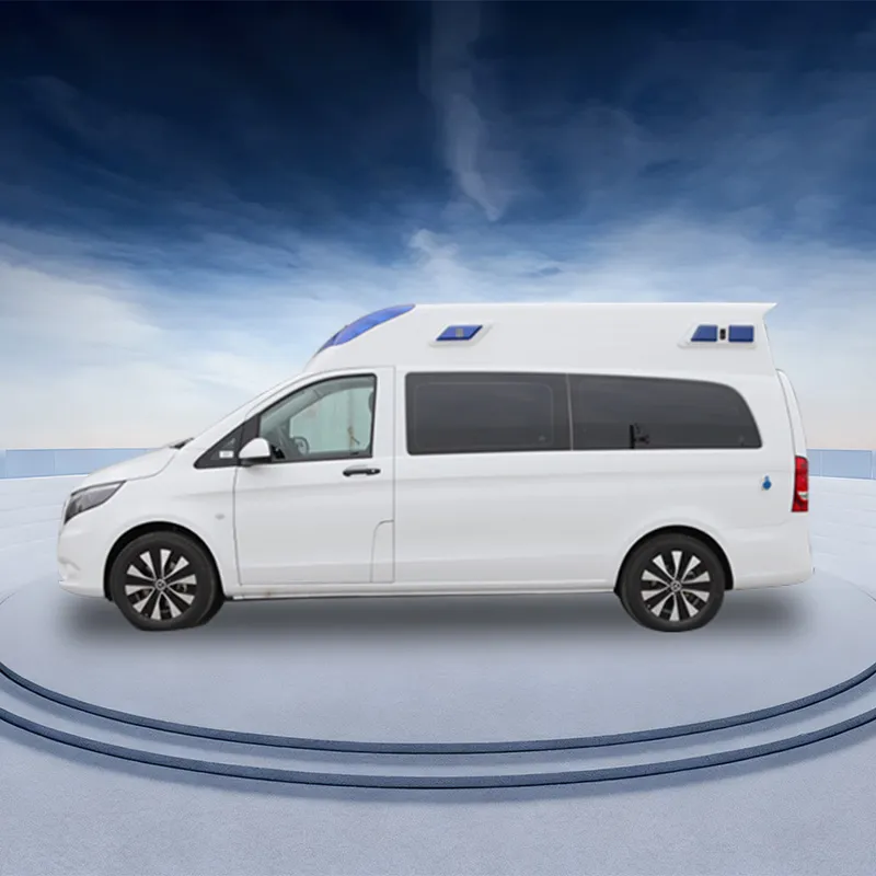APK/Ambulance/Mercedes-Benz Vito/AT/Gas. Ambulance provides advanced medical transport services for patients requiring continuous intensive care and advanced life support, the vehicle can be customized with different exterior designs, interior layouts, and medical configurations according to customer requirements.